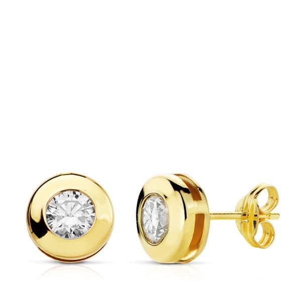 18K PENDIENTES ORO AMARILLO CHATON GALERIA CIRCONITA 8.5 MM PRESION