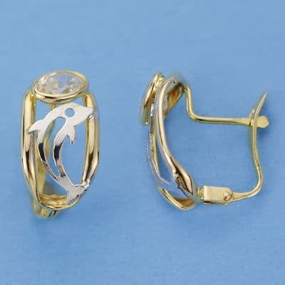 18K PENDIENTES ORO AMARILLO CIRCONITA Y DELFIN. 15 X 8 MM