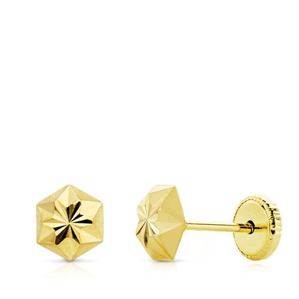 18K PENDIENTES ORO AMARILLO CLAVO ESTRELLA TALLADOS 5 MM