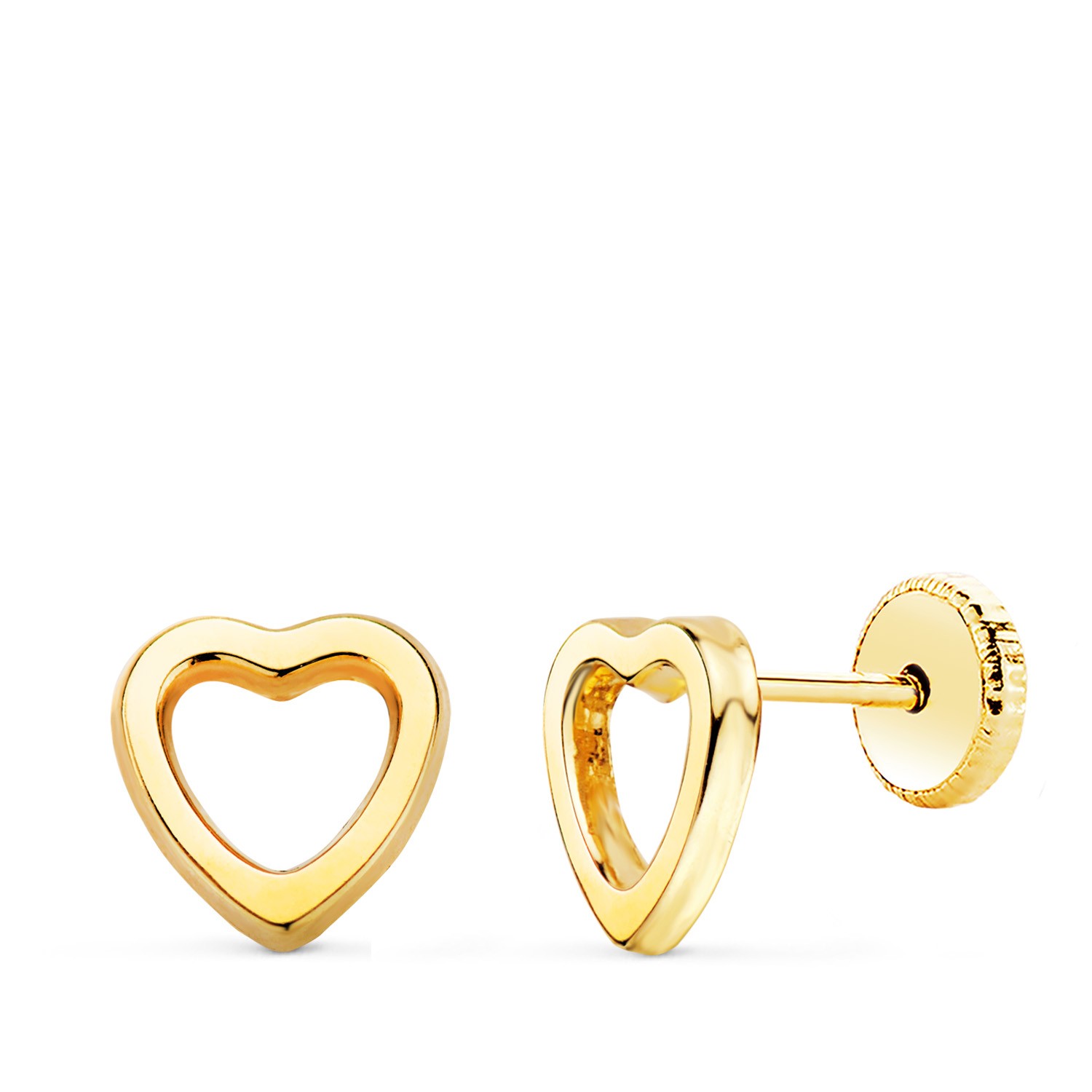 18K PENDIENTES ORO AMARILLO CORAZON CALADO 5X5 MM. CIERRE TUERCA