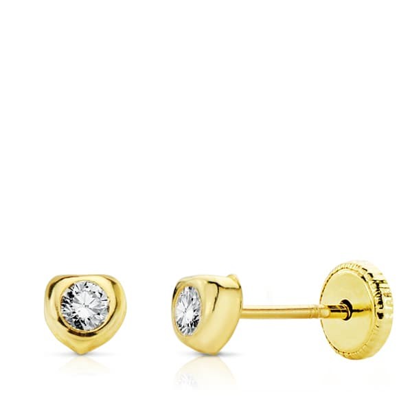 18K PENDIENTES ORO AMARILLO CORAZON CIRCONITA 4 MM TUERCA