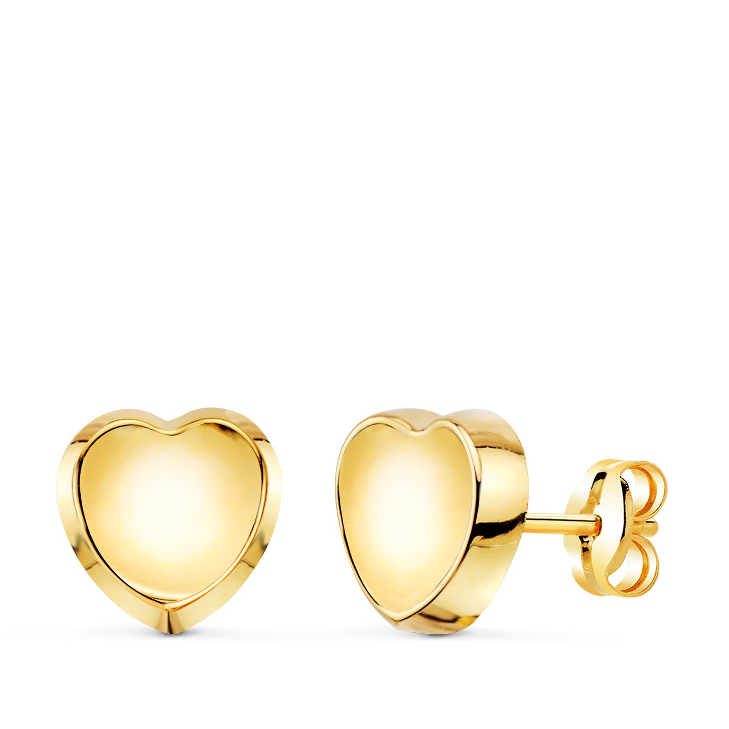 18K PENDIENTES ORO AMARILLO CORAZON CONCAVO EN BRILLO 8X8 MM. CIERRE PRESION