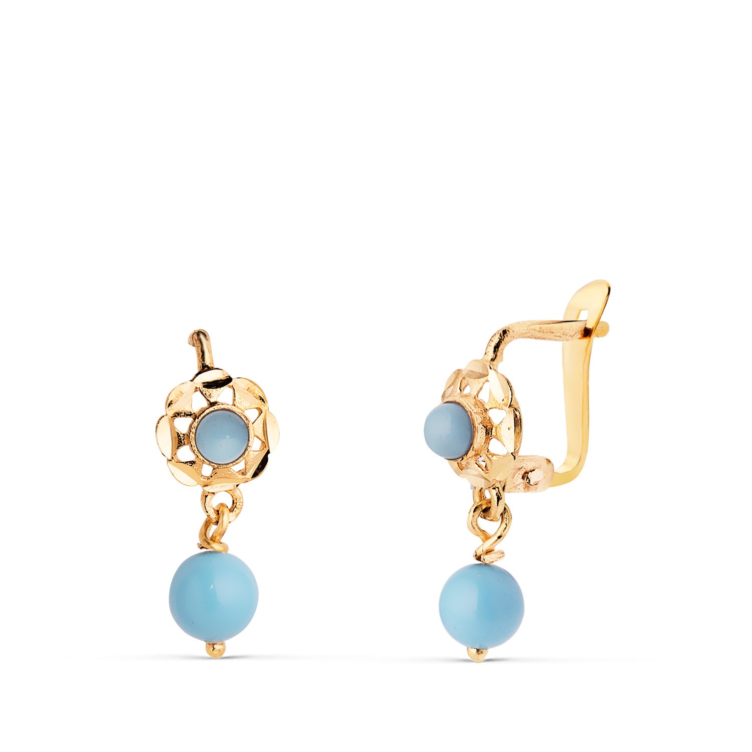 18K PENDIENTES ORO AMARILLO CUBANAS CON TURQUESAS. 15X6 MM CIERRE CATALAN