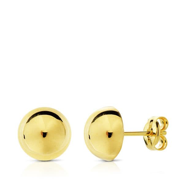 18K PENDIENTES ORO AMARILLO MEDIA BOLA LISA 12 MM CIERRE PRESION