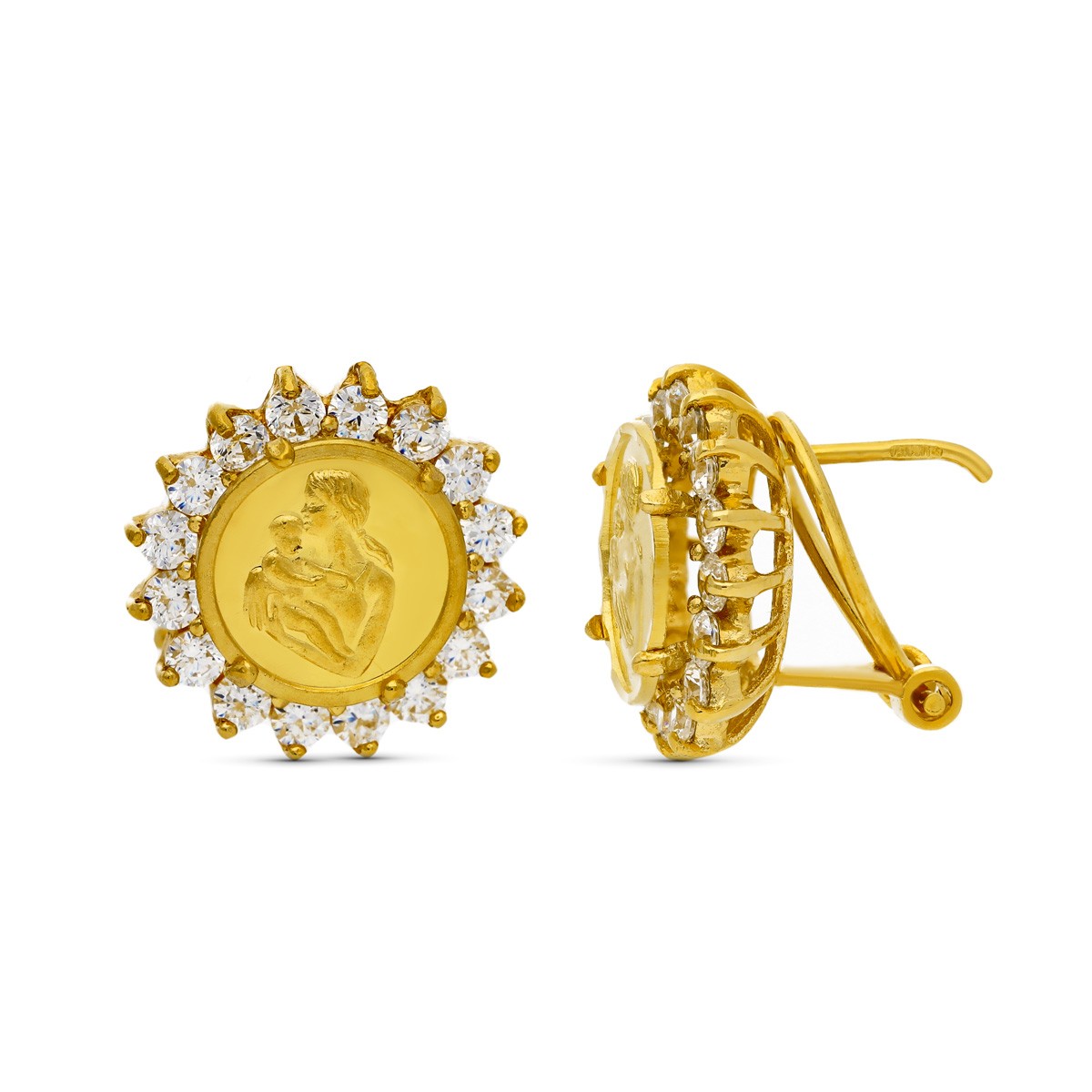 18K PENDIENTES ORO AMARILLO MONEDA MADRE. 14 X 13 MM.