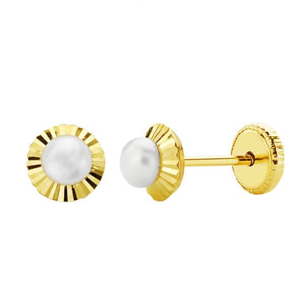 18K PENDIENTES ORO AMARILLO PERLA ORLA TALLADA 5 MM CIERRE TUERCA