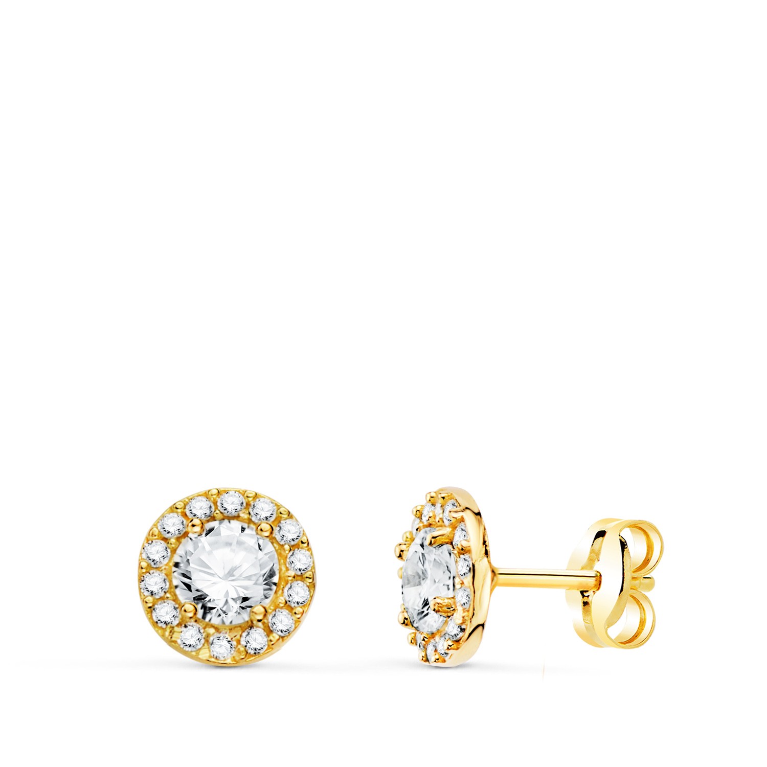18K PENDIENTES ORO AMARILLO REDONDOS CON CIRCONITAS BLANCAS. ANCHO:...