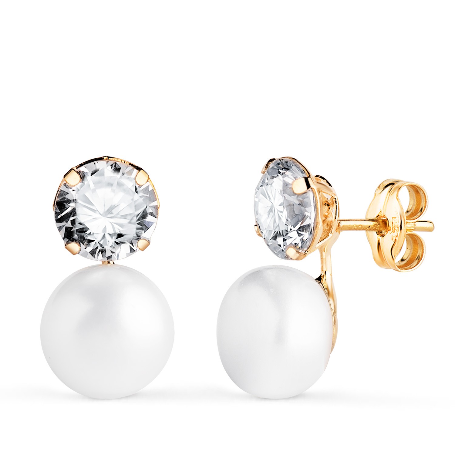 18K PENDIENTES ORO AMARILLO TU Y YO PERLA CON CIRCONITA REDONDA. MEDIDA: 14 X 8 MM. CIERRE PRESION