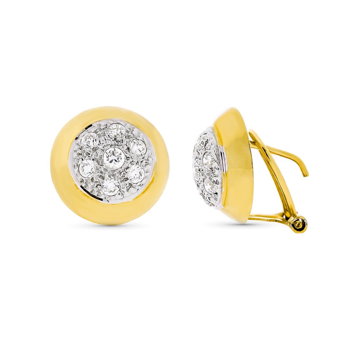 18K PENDIENTES ORO BICOLOR PIÑA RODIO. 13 MM.