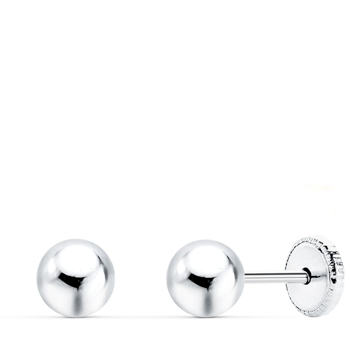 18K PENDIENTES ORO BLANCO BOLA LISA 5 MM CIERRE TUERCA