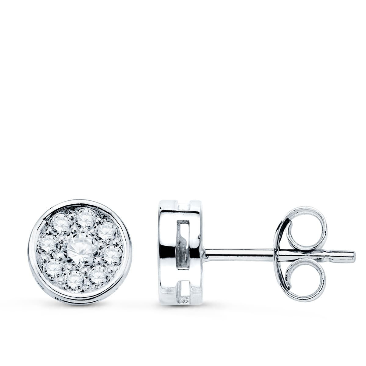 18K PENDIENTES ORO BLANCO CHATON CON 18 DIAMANTES 7 X 7 MM. 0.360...