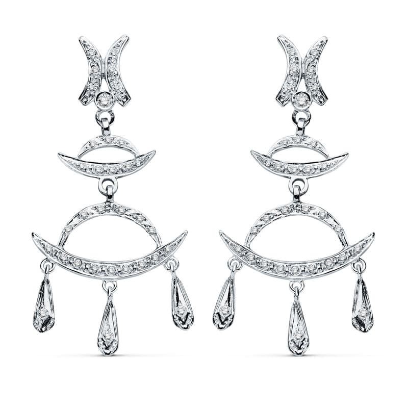18K PENDIENTES ORO BLANCO CIRCONITAS. 48 X 23 MM