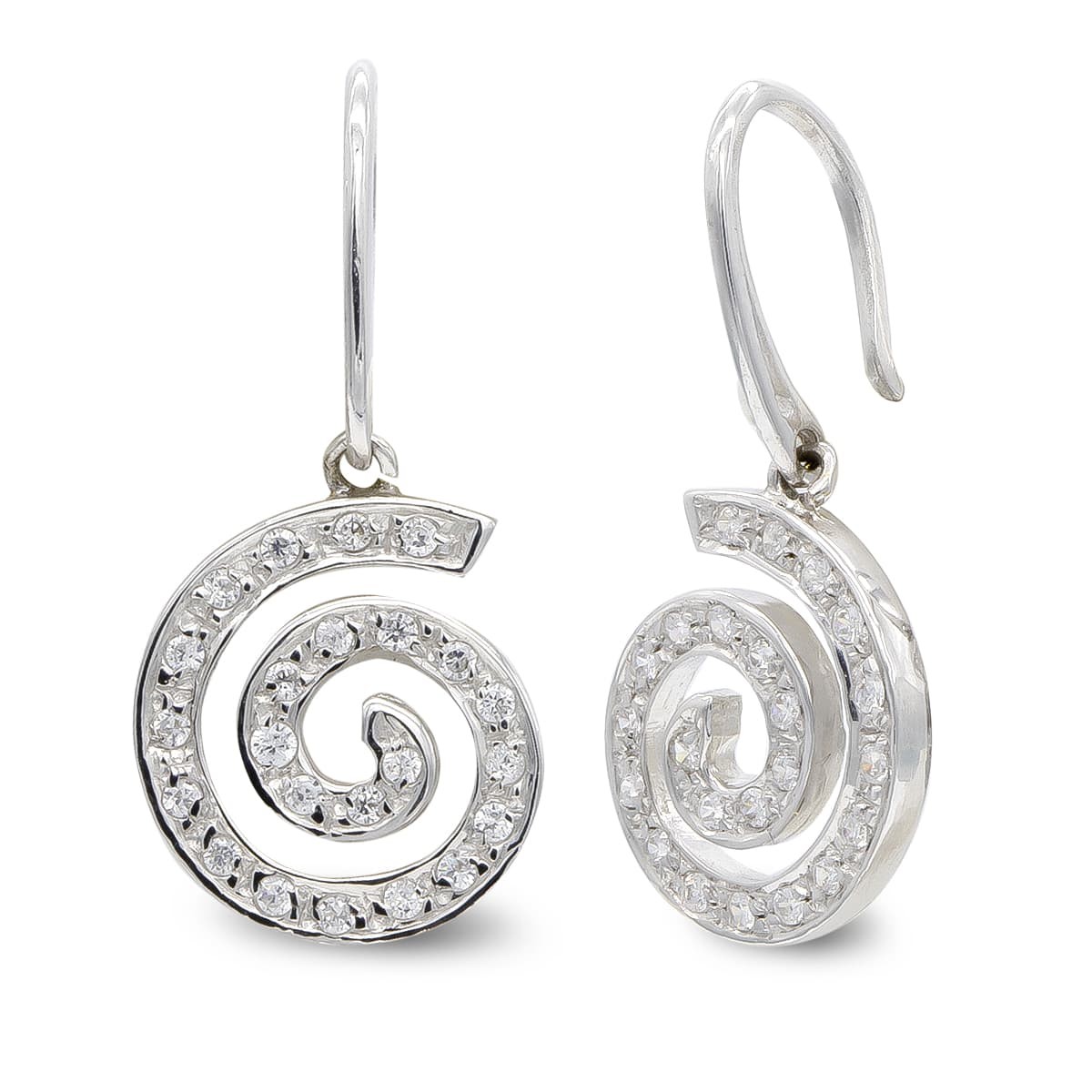 18K PENDIENTES ORO BLANCO CIRCONITAS ESPIRAL. 15 X 13 MM.