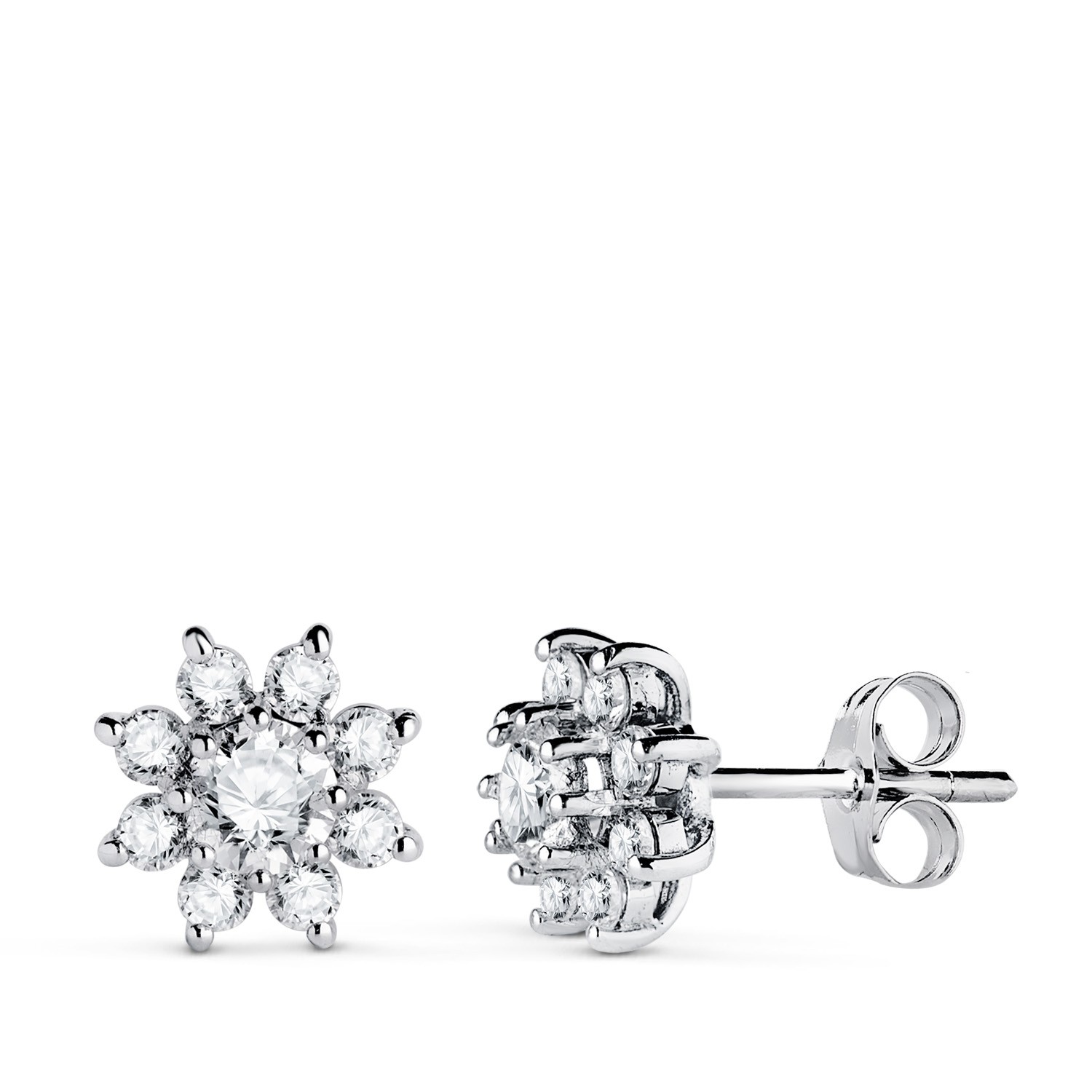 18K PENDIENTES ORO BLANCO CUAJO CON 18 DIAMANTES 1,00 QTES, G-VS2. 9X9 MM. CIERRE PRESION