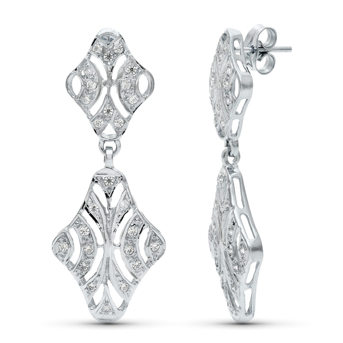 18K PENDIENTES ORO BLANCO DOBLE CUERPO JUEGO NOVIA CIRCONITAS 40X15 MM PRESION