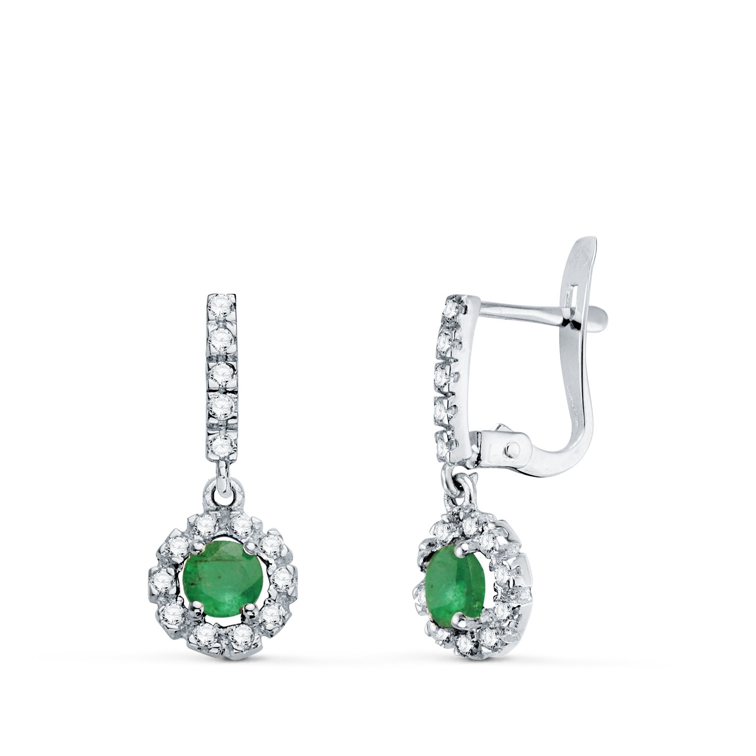 18K PENDIENTES ORO BLANCO ESMERALDA 4MM - 0,56 QTES Y CIRCONITAS. 17X7MM CATALAN