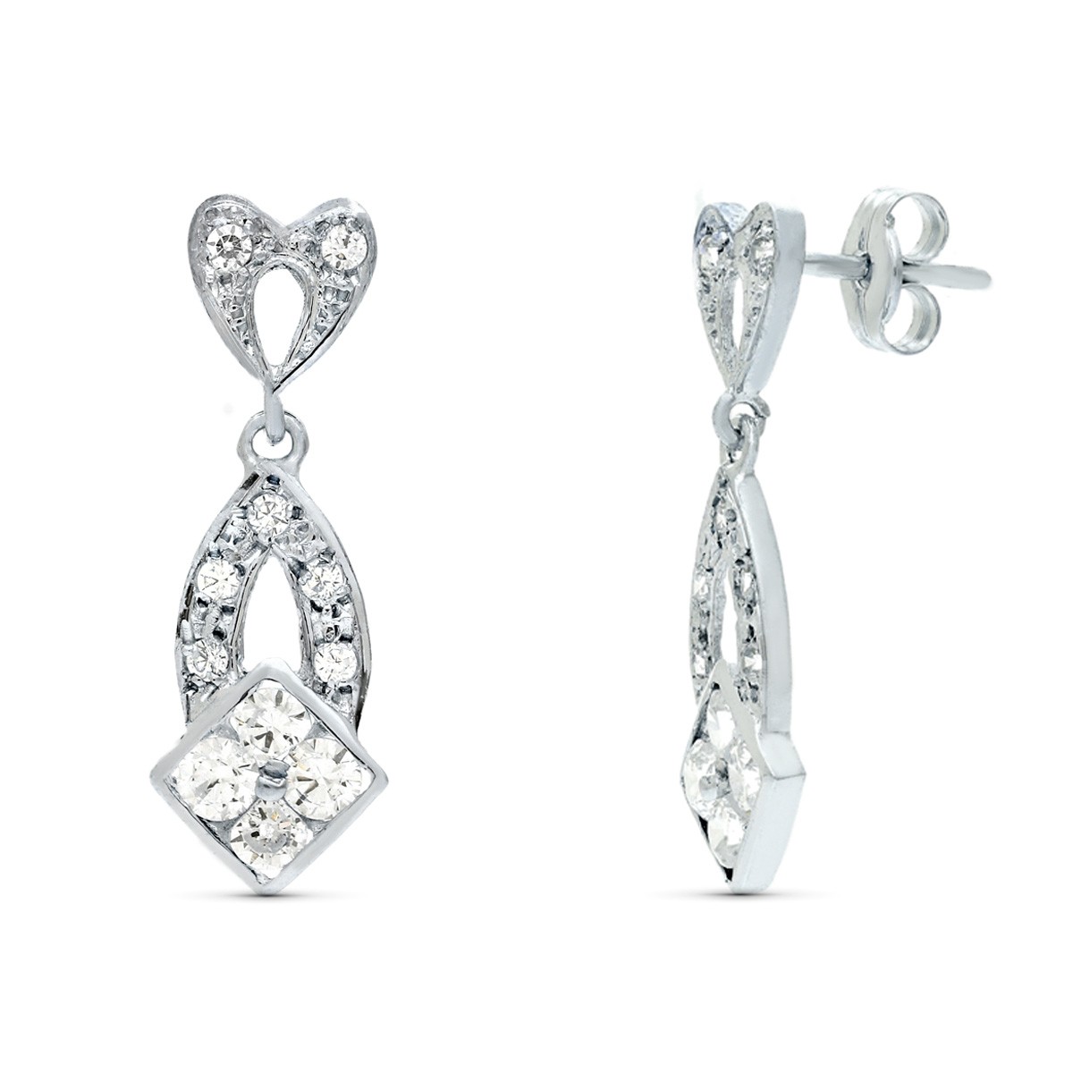 18K PENDIENTES ORO BLANCO JUEGO NOVIA 24X7 MM CIERRE PRESION