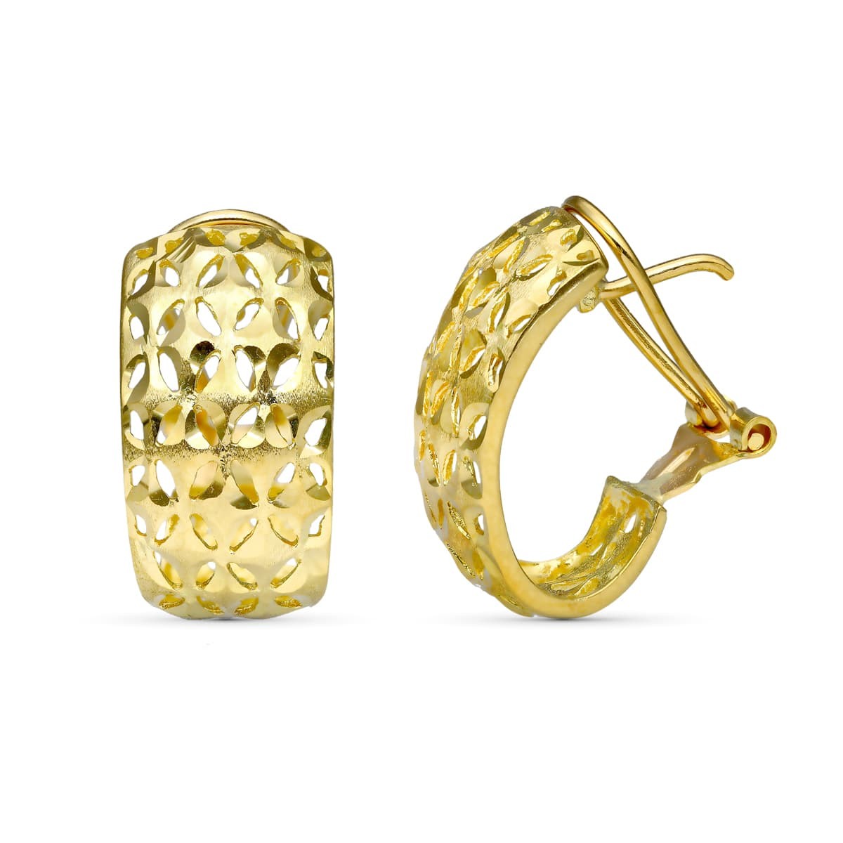18K PENDIENTES TALLADOS CALADOS. 18 X 10 MM.