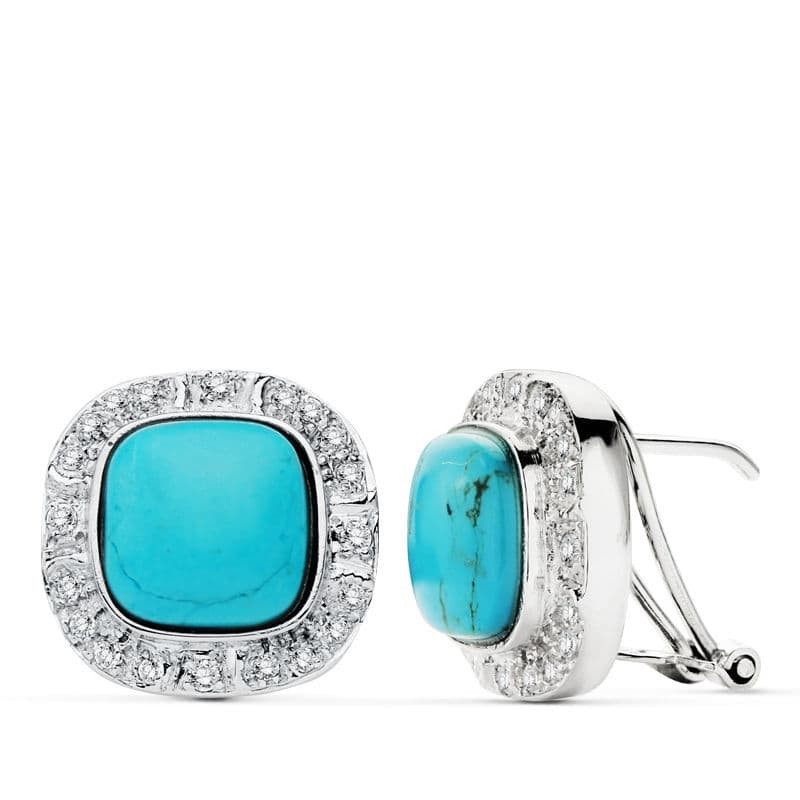 18K PENDIENTES TURQUESA 10MM Y CIRCONITAS OMEGA 16MM