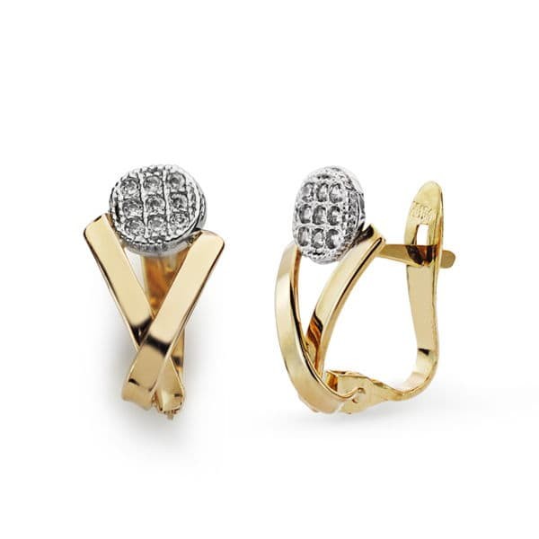 9K PENDIENTES BICOLOR CIRCONITAS 13 X 7MM
