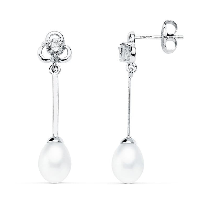 9K PENDIENTES LARGOS ORO BLANCO PERLA
