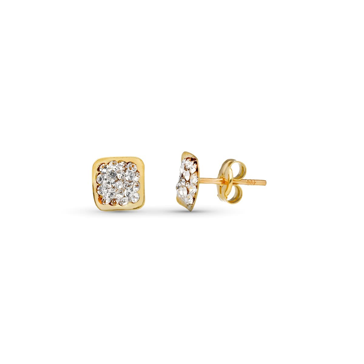 9K PENDIENTES ORO AMARILLO CUADRADOS CON CIRCONITAS 6X6 MM. CIERRE PRESION