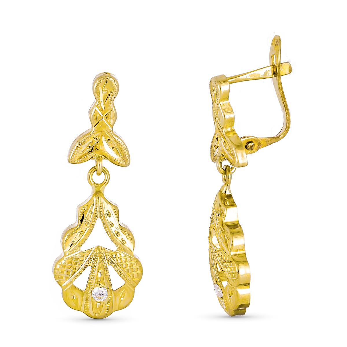 9K PENDIENTES ORO AMARILLO CUBANA DOS CUERPOS 27 X 10 MM. CIERRE CATALAN