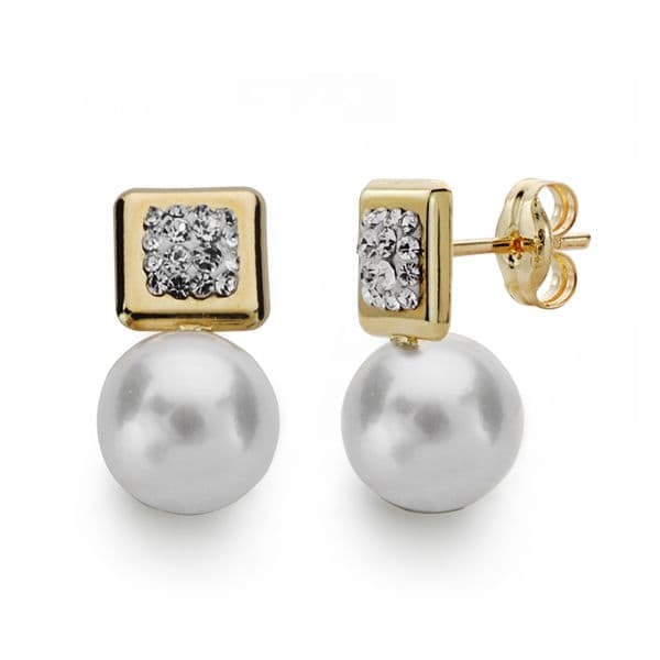9K PENDIENTES ORO AMARILLO PERLA CULTIVADA 7.5-8 MM TOTAL 14X8 MM PRESION