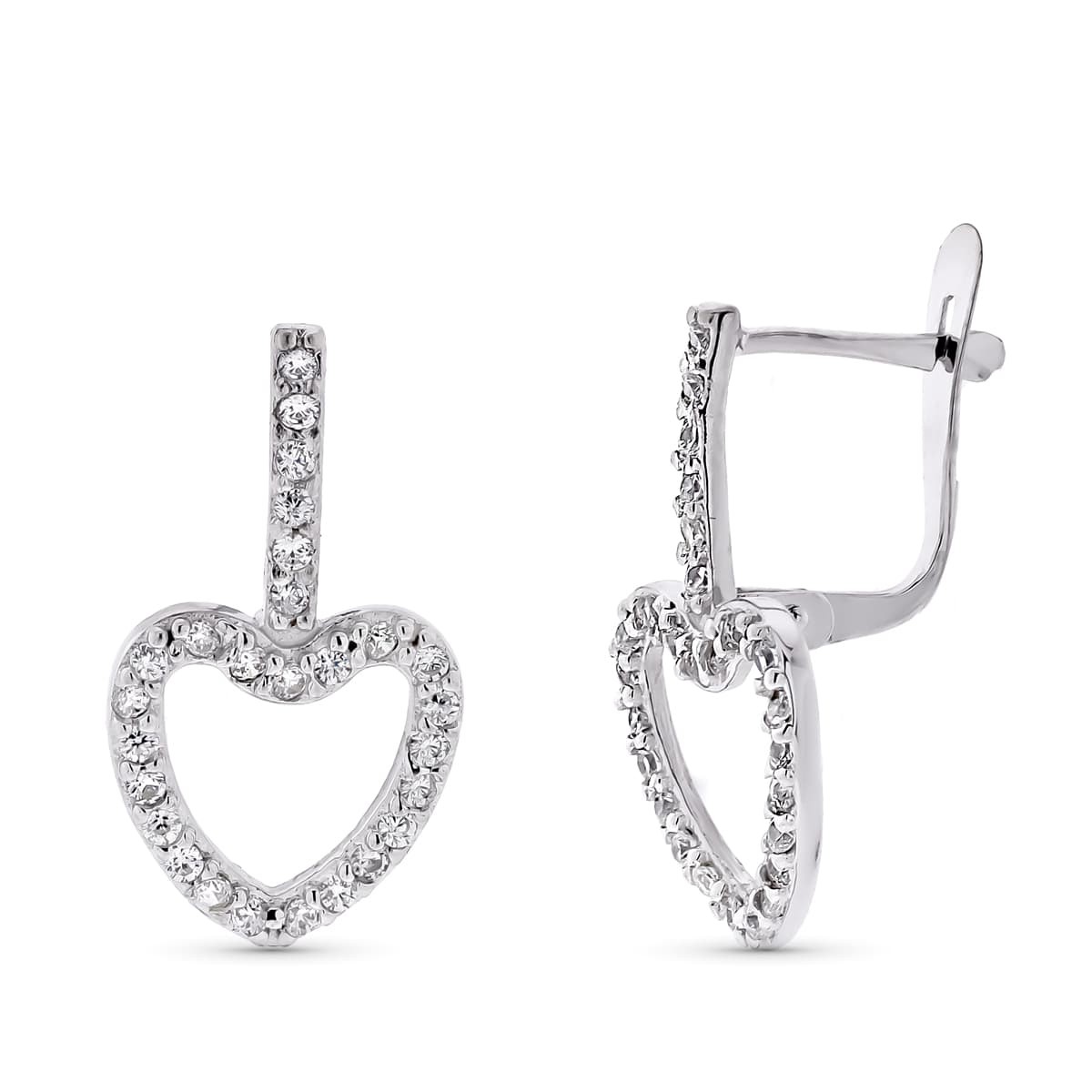 9K PENDIENTES ORO BLANCO DOS CUERPOS CORAZON CIRCONITA 20X10 MM