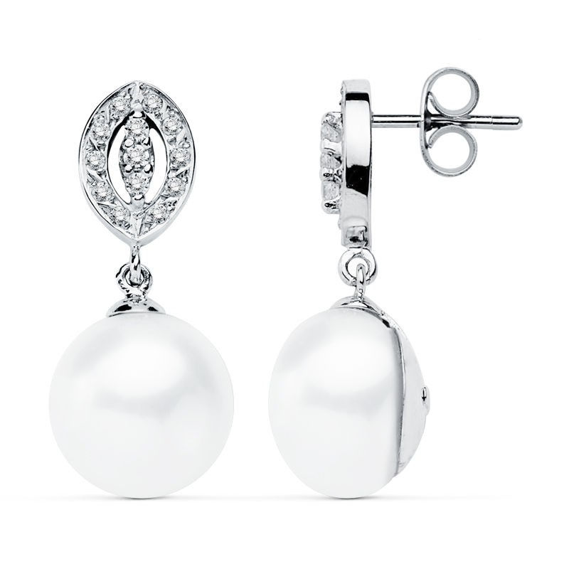 PENDIENTES ORO BLANCO 9 KTES PERLA. 27 X 11 MM.