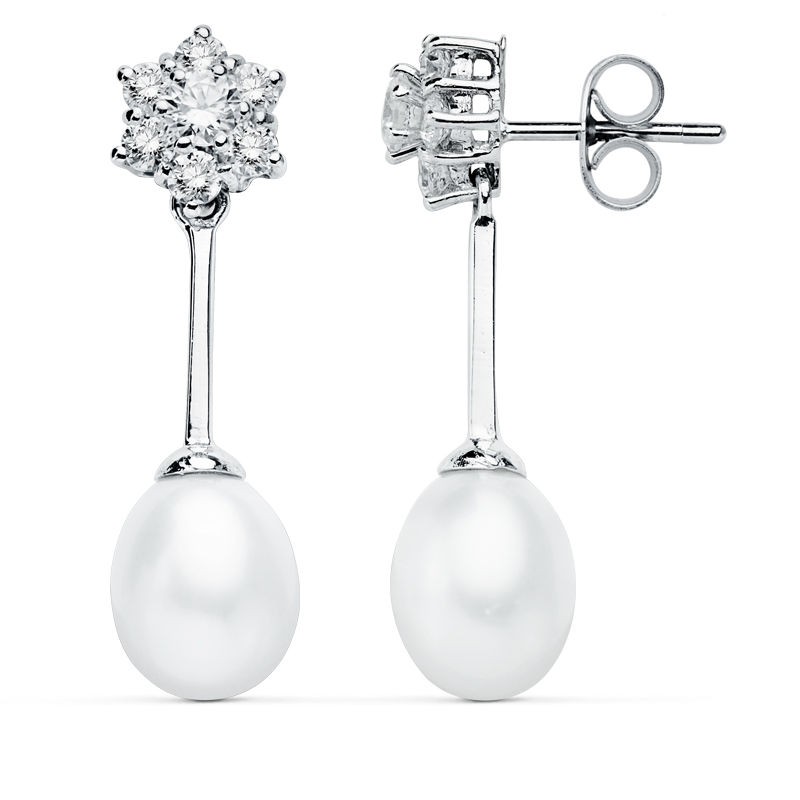 PENDIENTES ORO BLANCO 9 KTES PERLA. 30 X 8 MM.