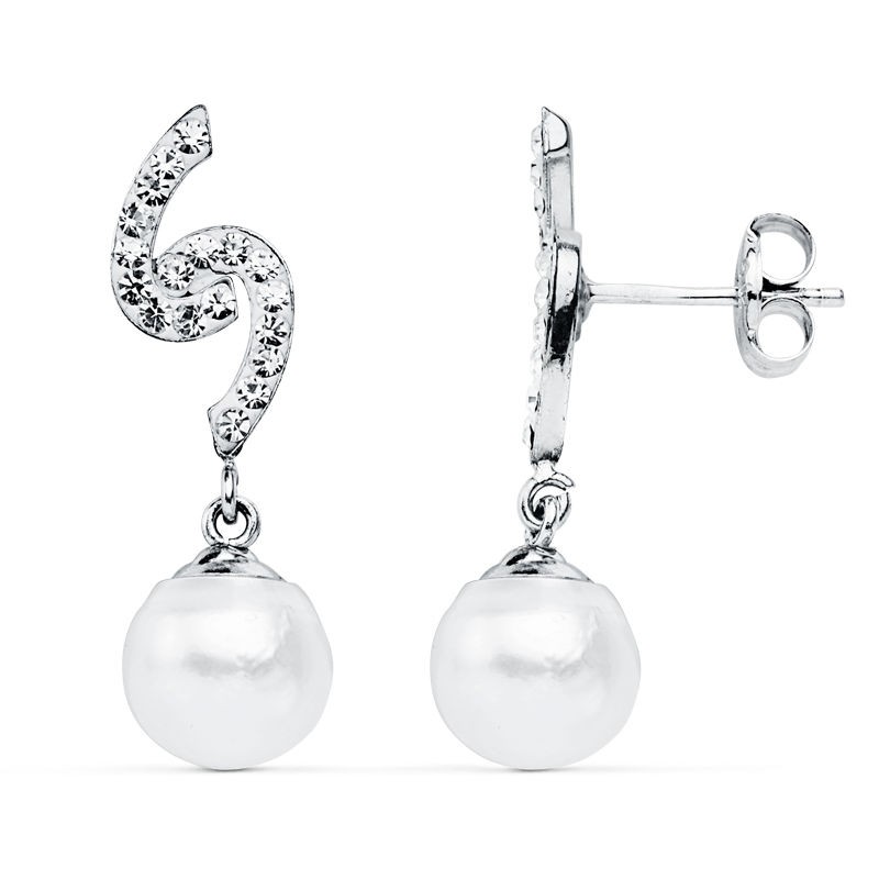 PENDIENTES ORO BLANCO 9 KTES PERLA 8 MM. 24 X 6 MM