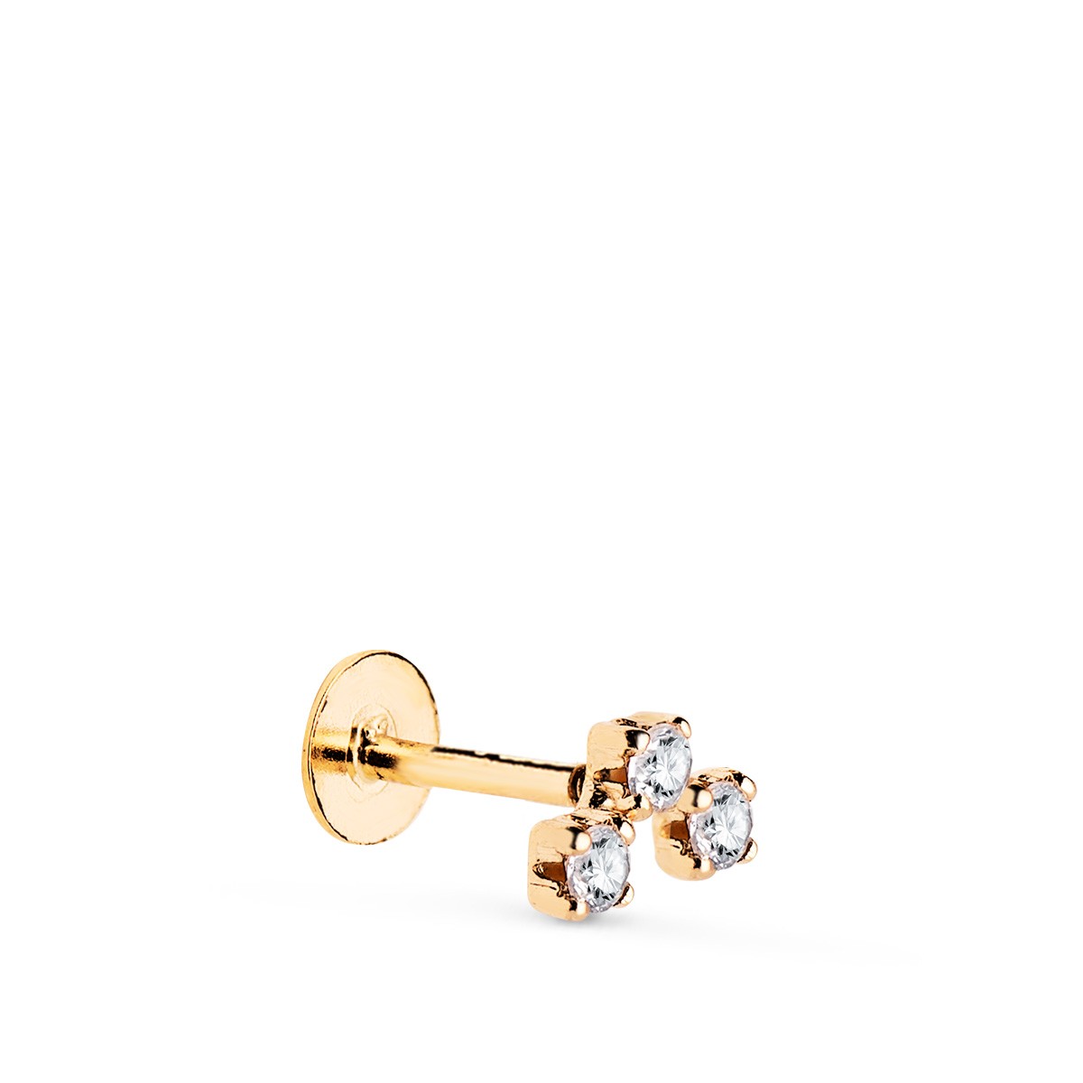 18K PIERCING DE OREJA ORO AMARILLO CON 3 CIRCONITAS. GRUESO BARRA 1.20 MM. MEDIDA: 6,5 X 4 MM. CIERRE TUERCA