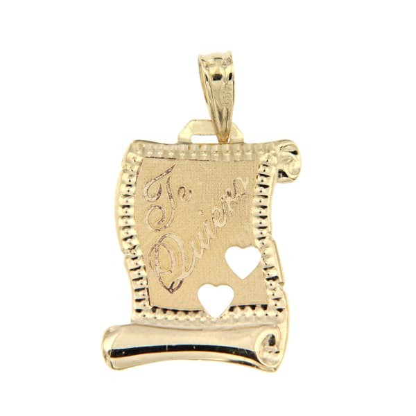 PERGAMINO ORO AMARILLO 9KTES. TE QUIERO. 19 X 14 MM.