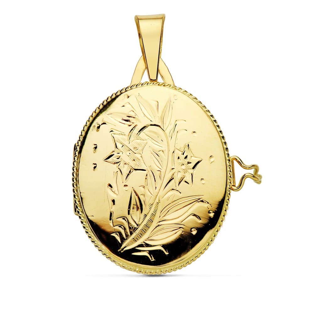 18K GUARDAPELO DIJE PORTAFOTOS OVAL LABRADO. 26 X 21 MM.