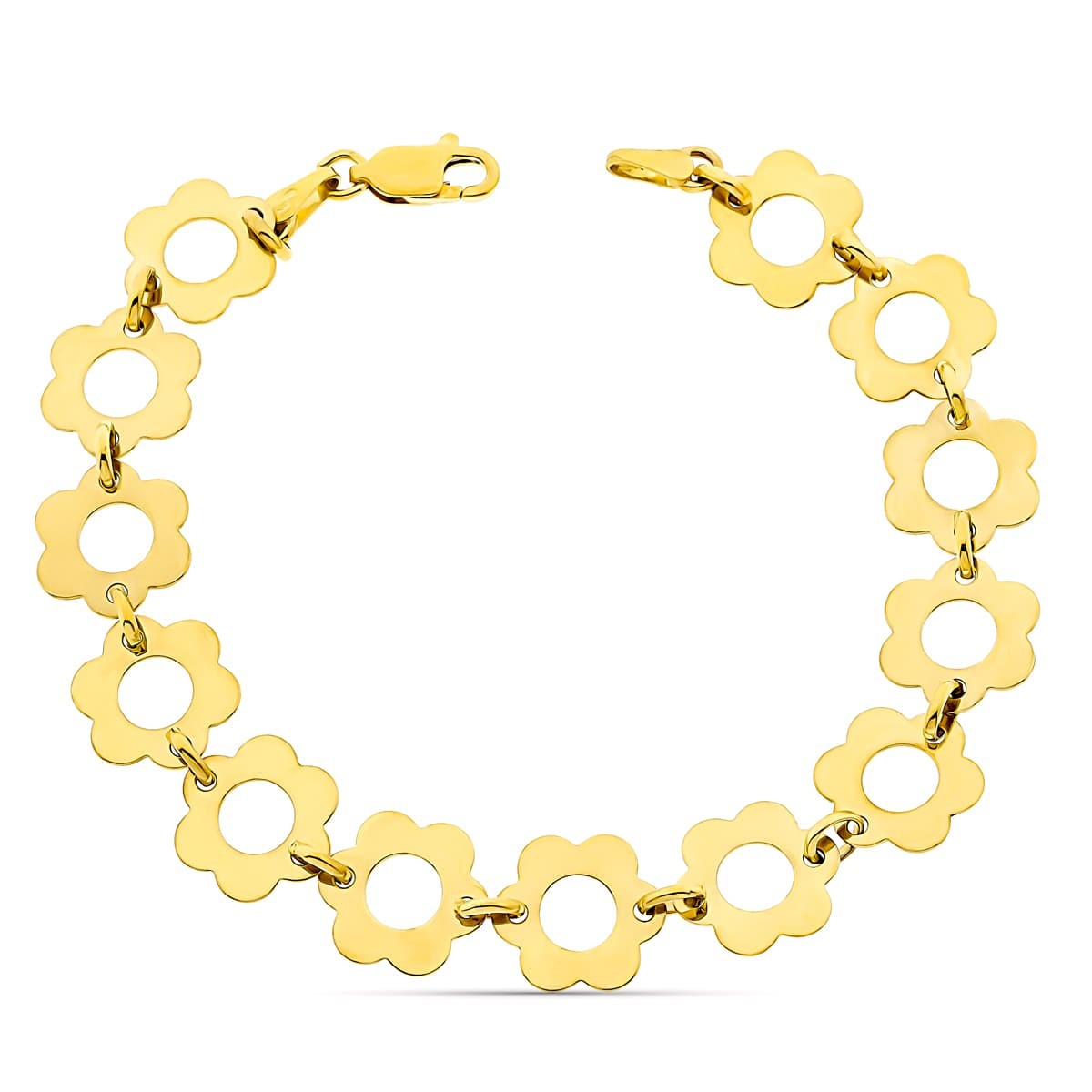 18K PULSERA ORO AMARILLO FLORES. ANCHO: 11 MM. LARGO: 19 CM.