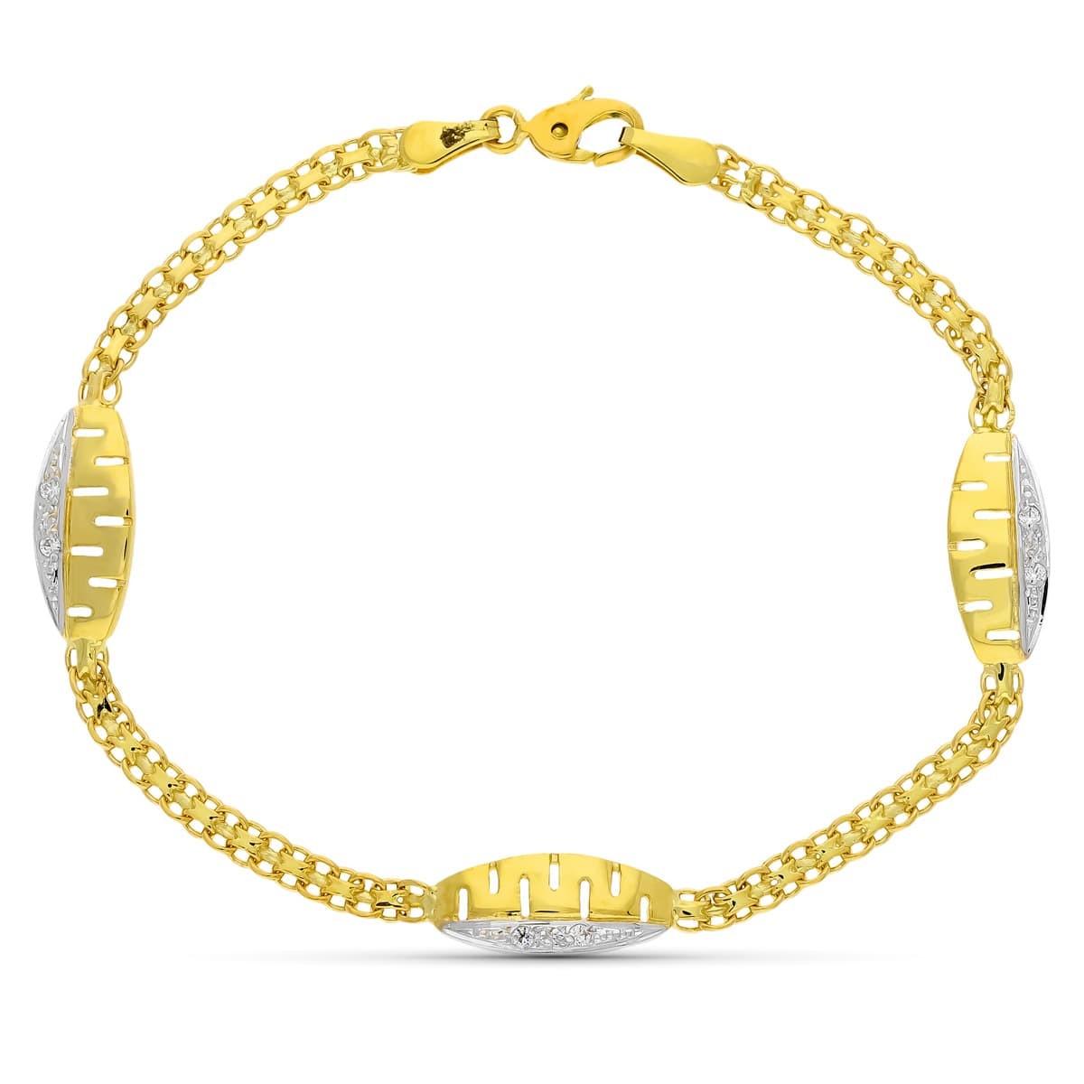 18K PULSERA ORO BICOLOR COMUNION CIRCONITAS. 17 CM.