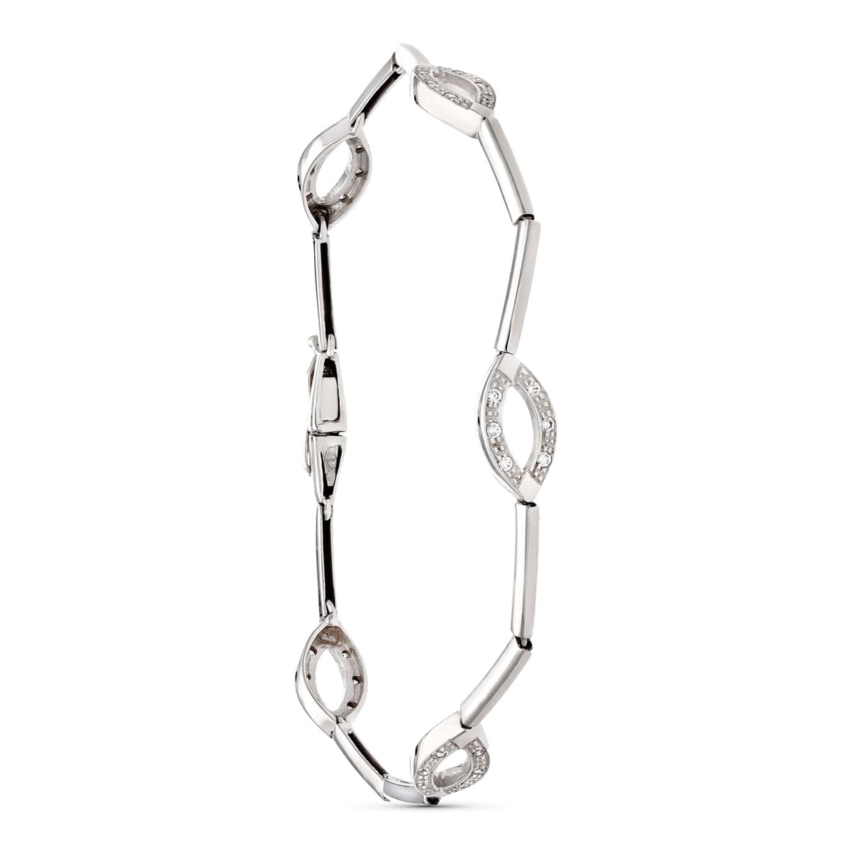 18K PULSERA ORO BLANCO BARRAS Y OVALOS CON CIRCONITAS 19,5CM.