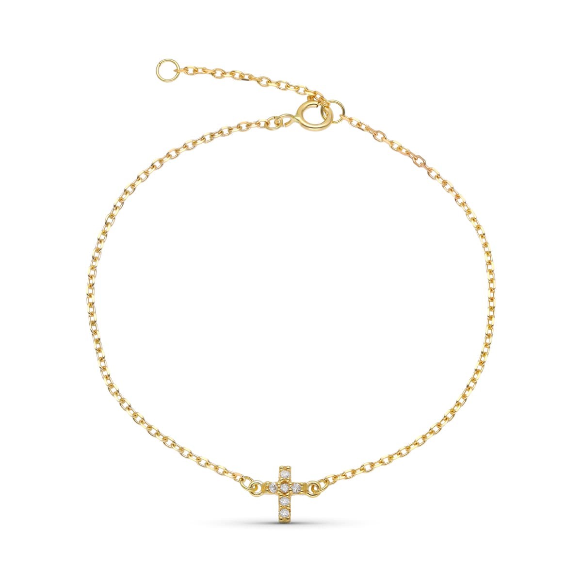 9K PULSERA ORO AMARILLO CRUZ DIAMANTES NATURALES 0.048 CTS 18XM - 16 CM