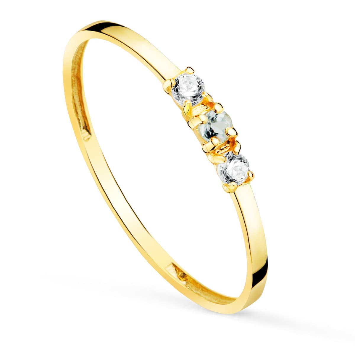 18K SORTIJA ORO AMARILLO AGUAMARINA Y CIRCONITA ANCHO CUERPO 1.2 MM