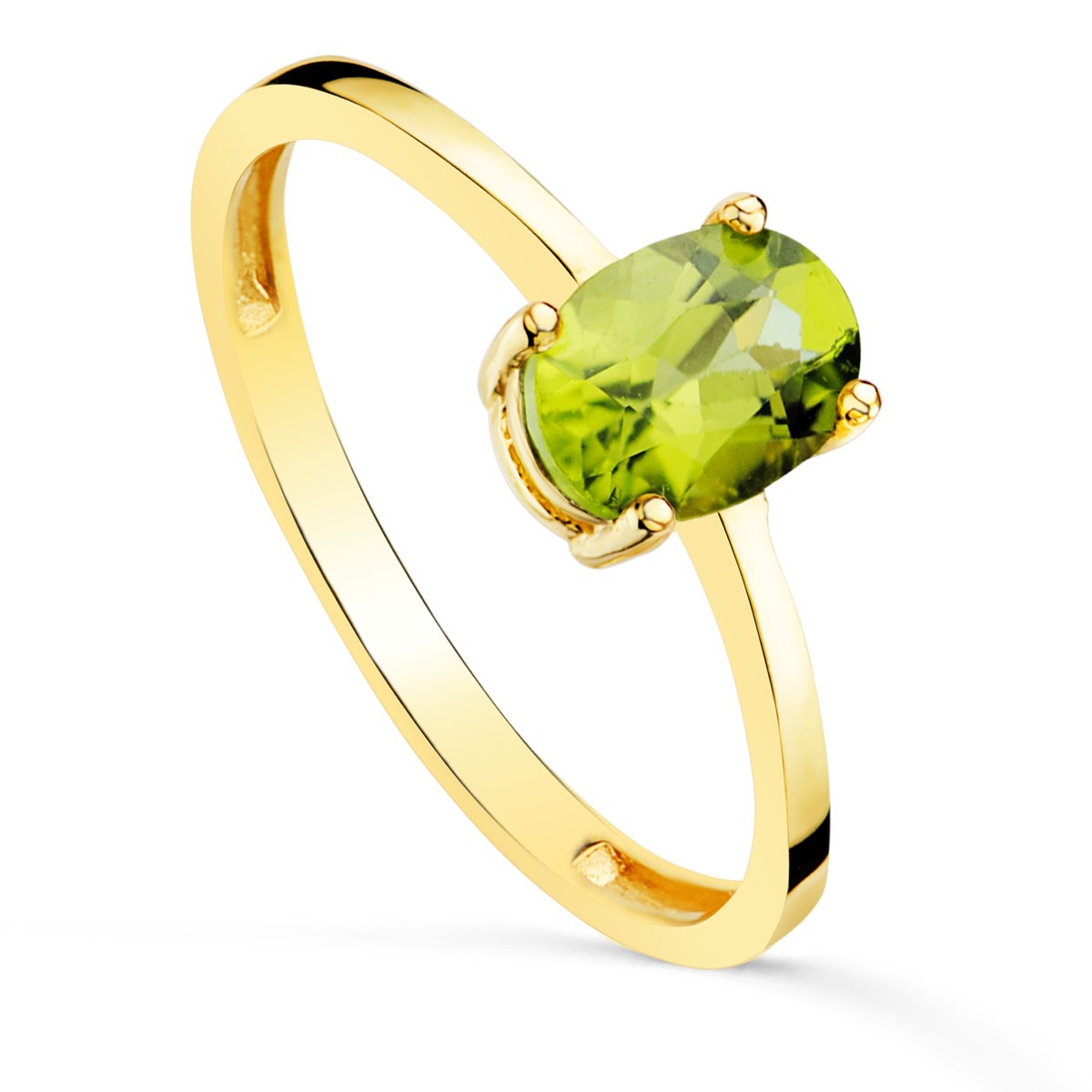 18K SORTIJA ORO AMARILLO GARRAS PIEDRA OLIVINA 7 X 5MM ANCHO CUERPO 2MM