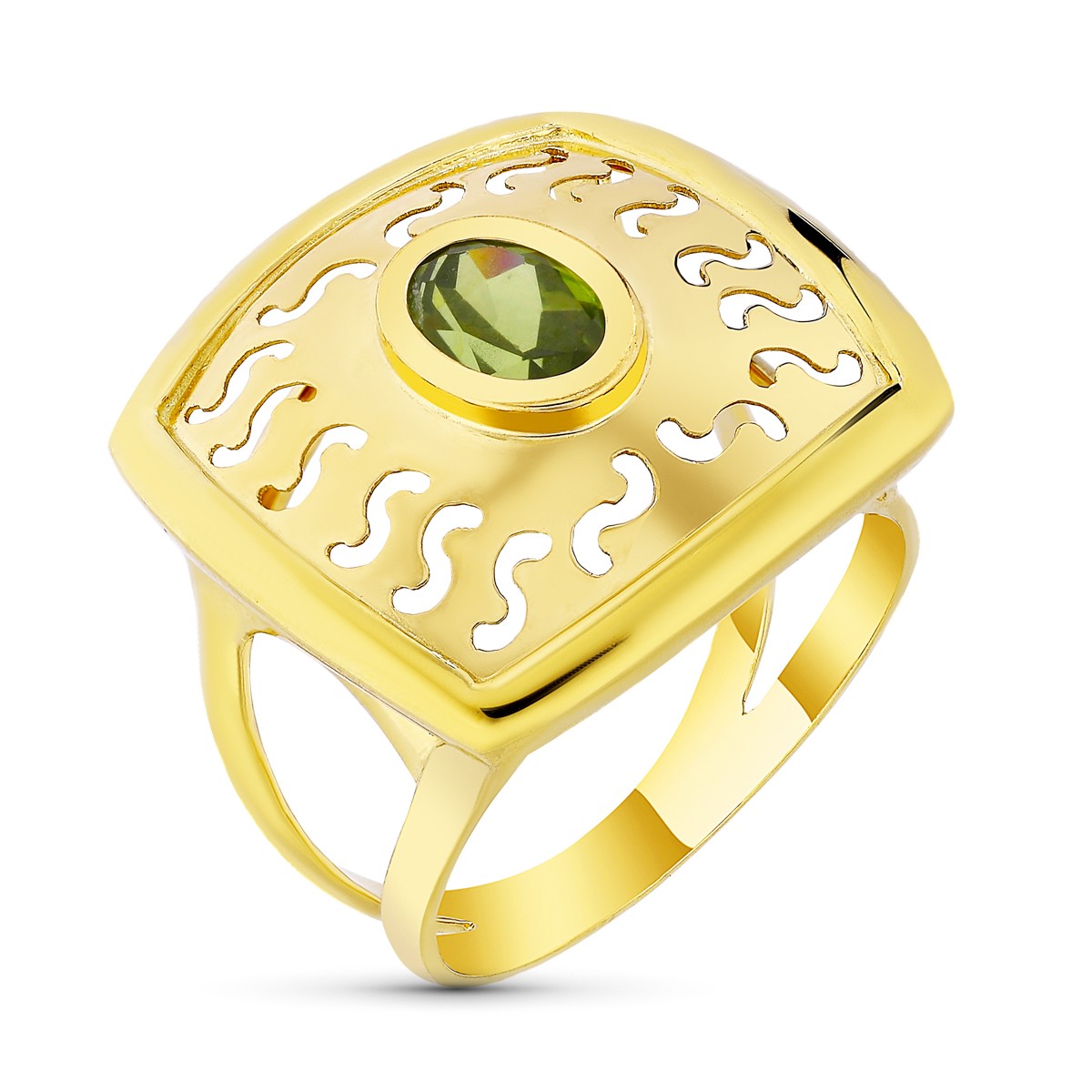 18K SORTIJA ORO AMARILLO MOTIVO CALADO CON CIRCONITA OLIVINA. ANCHO: 20 MM