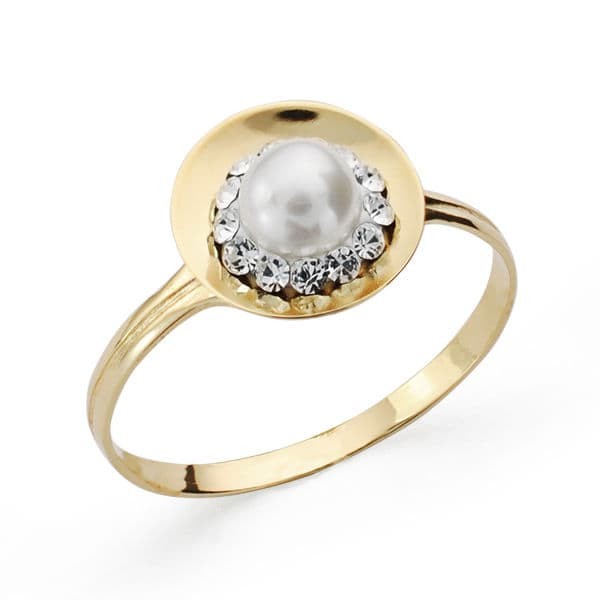 18K SORTIJA ORO AMARILLO MOTIVO REDONDO CON PERLA 4;5 MM Y CIRCONITAS. ANCHO: 10 MM