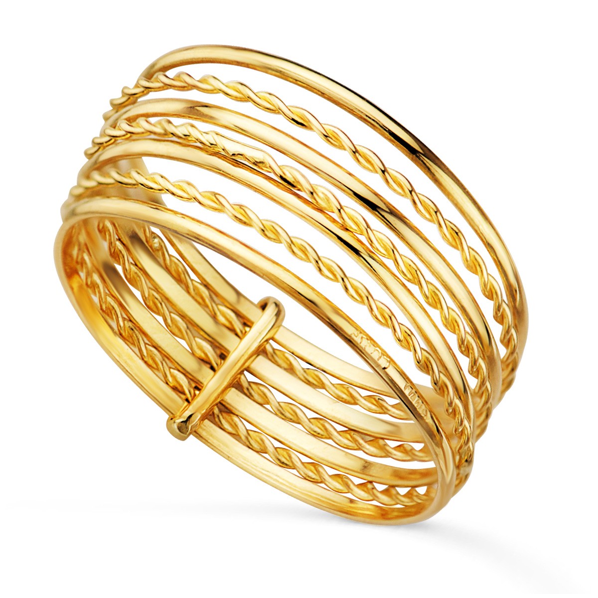 18K SORTIJA ORO AMARILLO SEMANARIO 7 HILOS LISOS Y TRENZADOS