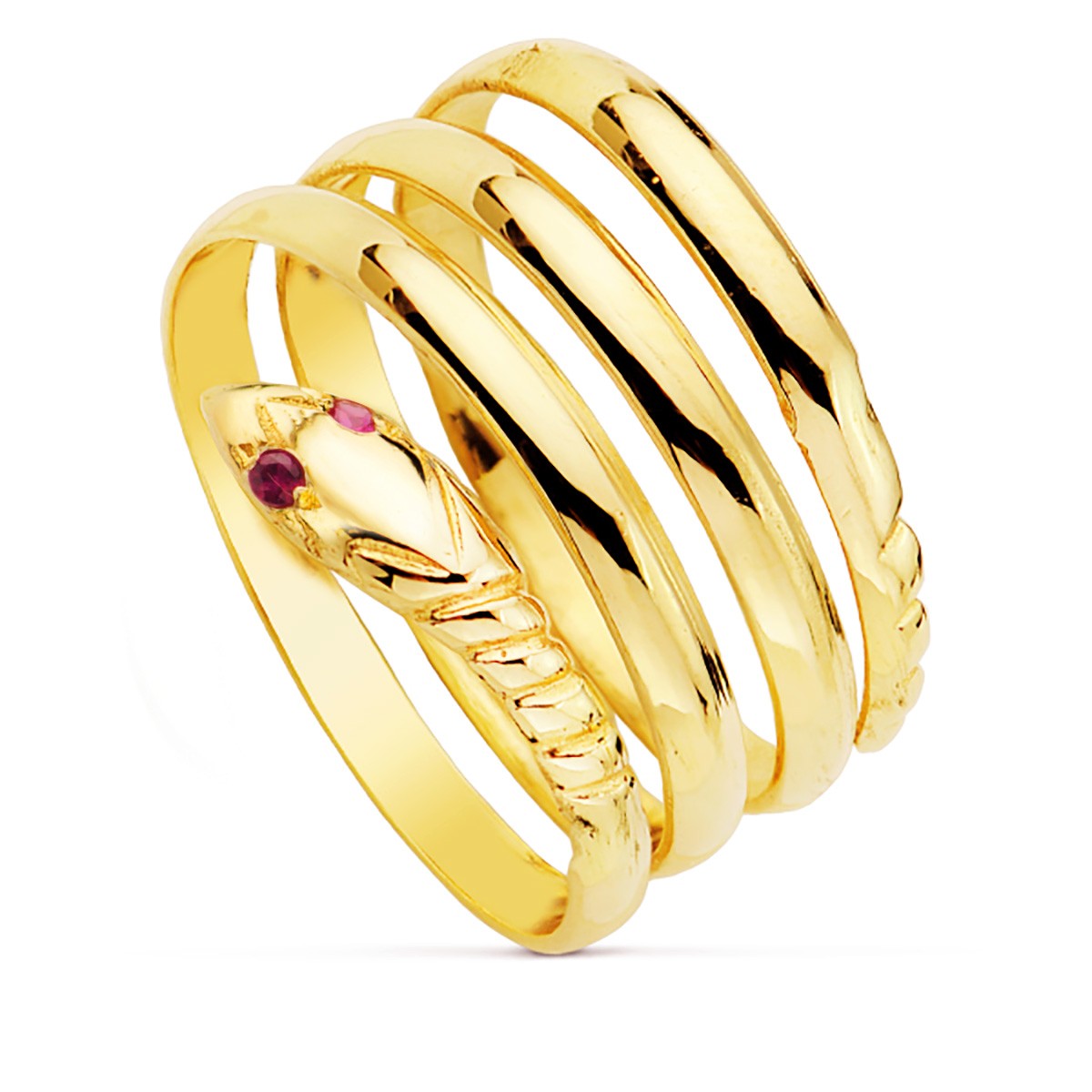 18K SORTIJA ORO AMARILLO SERPIENTE CUERPO 3 VUELTAS OJOS RUBI