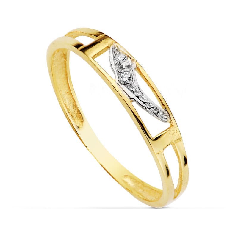 18K SORTIJA ORO BICOLOR CALADA CON CIRCONITAS. ANCHO: 3;5 MM