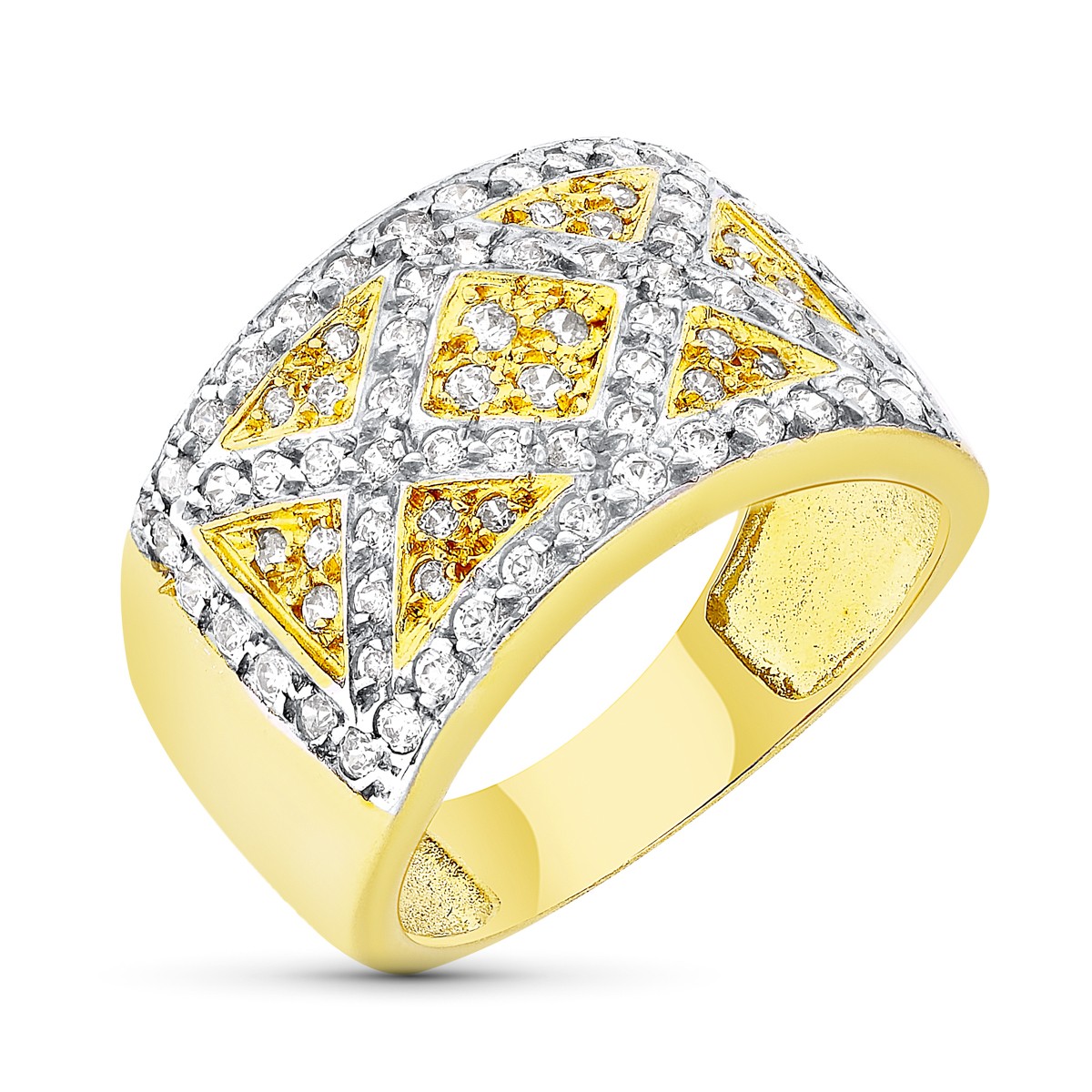 18K SORTIJA ORO BICOLOR MACIZA CALADA CON CIRCONITAS. ANCHO: 13 MM