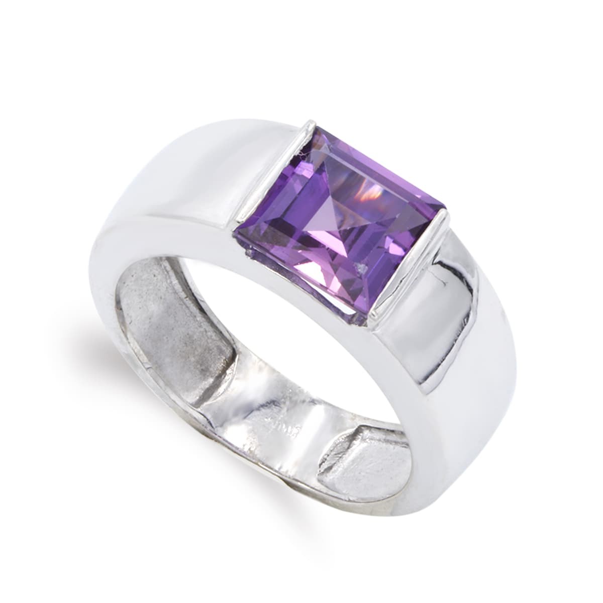 18K SORTIJA ORO BLANCO CON AMATISTA CUADRADA. ANCHO: 8 MM