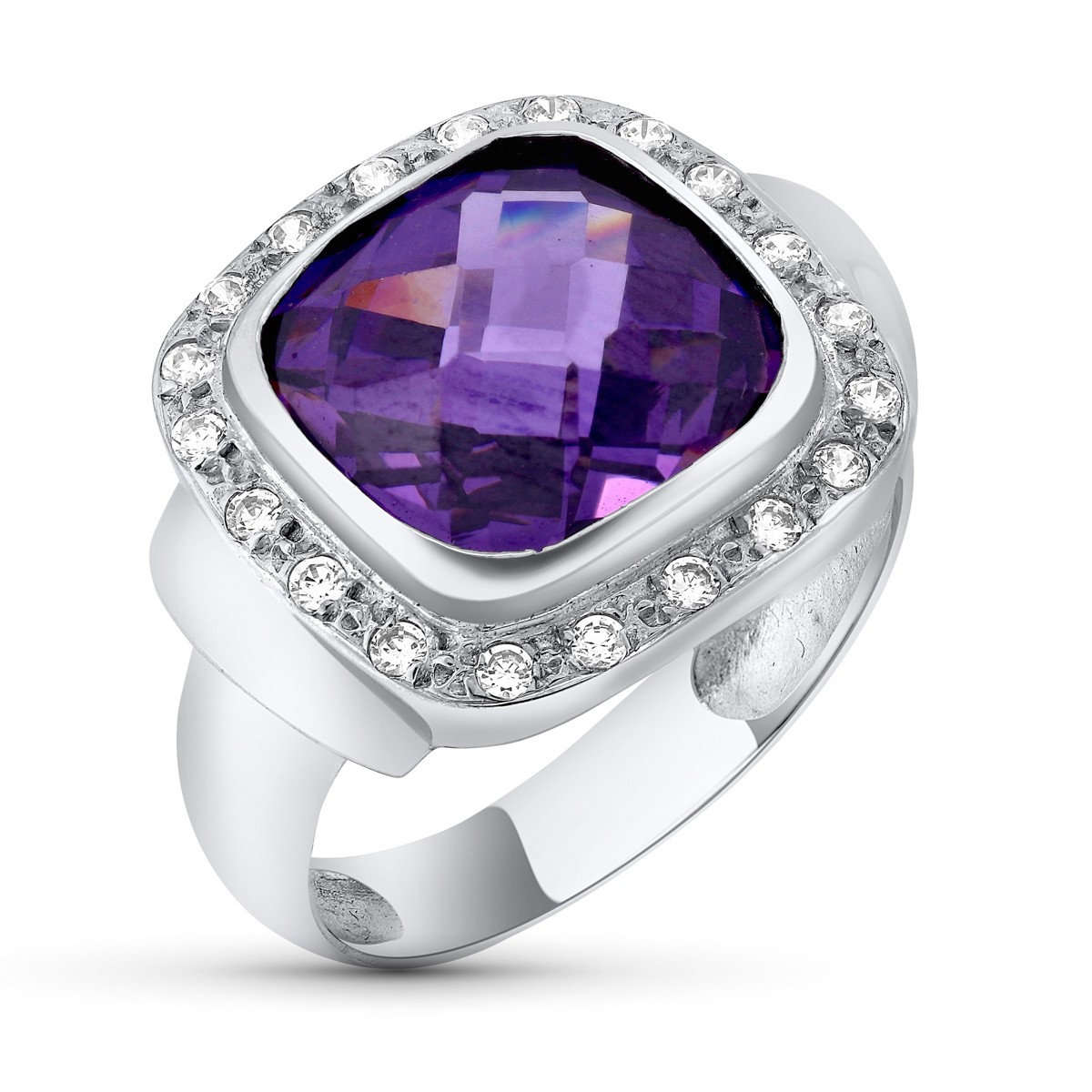 18K SORTIJA ORO BLANCO CON AMATISTA DE 12 MM Y CIRCONITAS. ANCHO: 17 MM