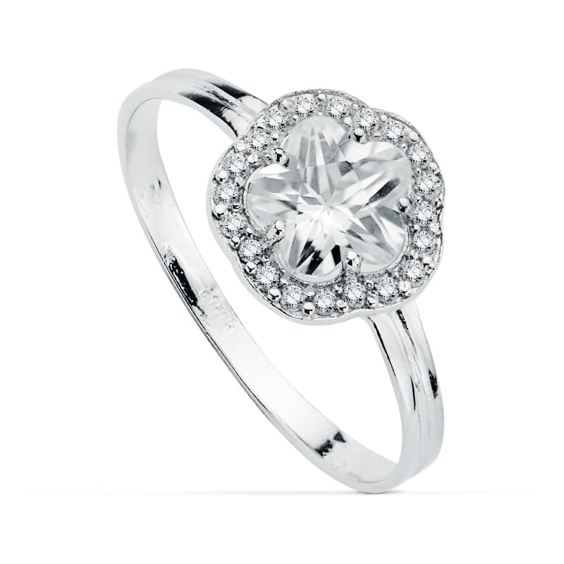 18K SORTIJA ORO BLANCO CON FLOR Y CIRCONITAS. ANCHO: 9 MM